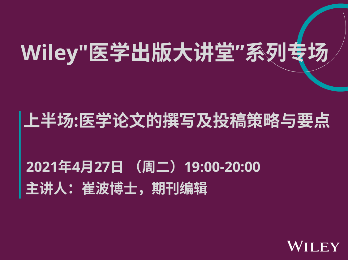 Wiley“医学出版大讲堂”系列专场上半场——医学论文的撰写及投稿策略与要点